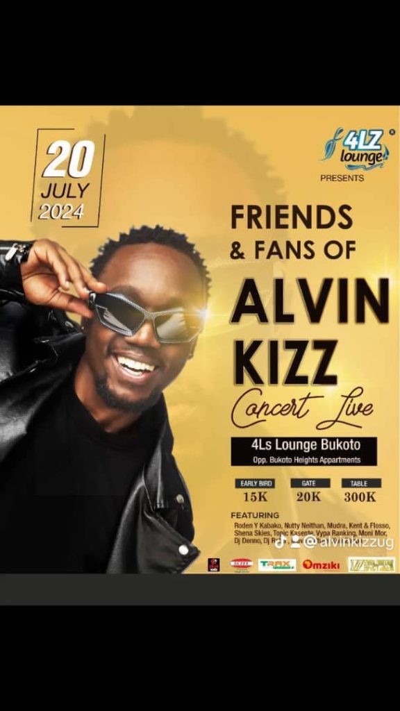 Uganda’s music scene is set for a memorable night as Alvin Kizz, gears up for his highly anticipated concert, “Friends and Fans of Alvin Kizz”. Scheduled for July 20th, 2024, the event will unfold at the vibrant 4L Lounge in Bukoto, promising an electrifying experience for music enthusiasts across Kampala.